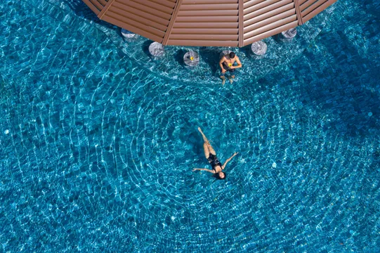 Hồ bơi tại Melia Hồ Tràm rộng gần 1.500m², nằm ngay sát mặt biển. Cảm giác ngâm mình trong làn nước mát, phóng tầm mắt ra đại dương mênh mông trong lúc thưởng thức một ly cocktail tại Breeza Beach Club là trải nghiệm mà bất cứ ai cũng muốn thử một lần.